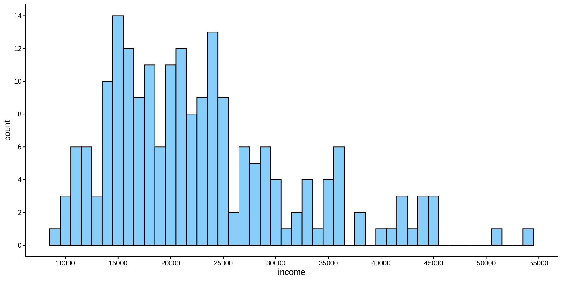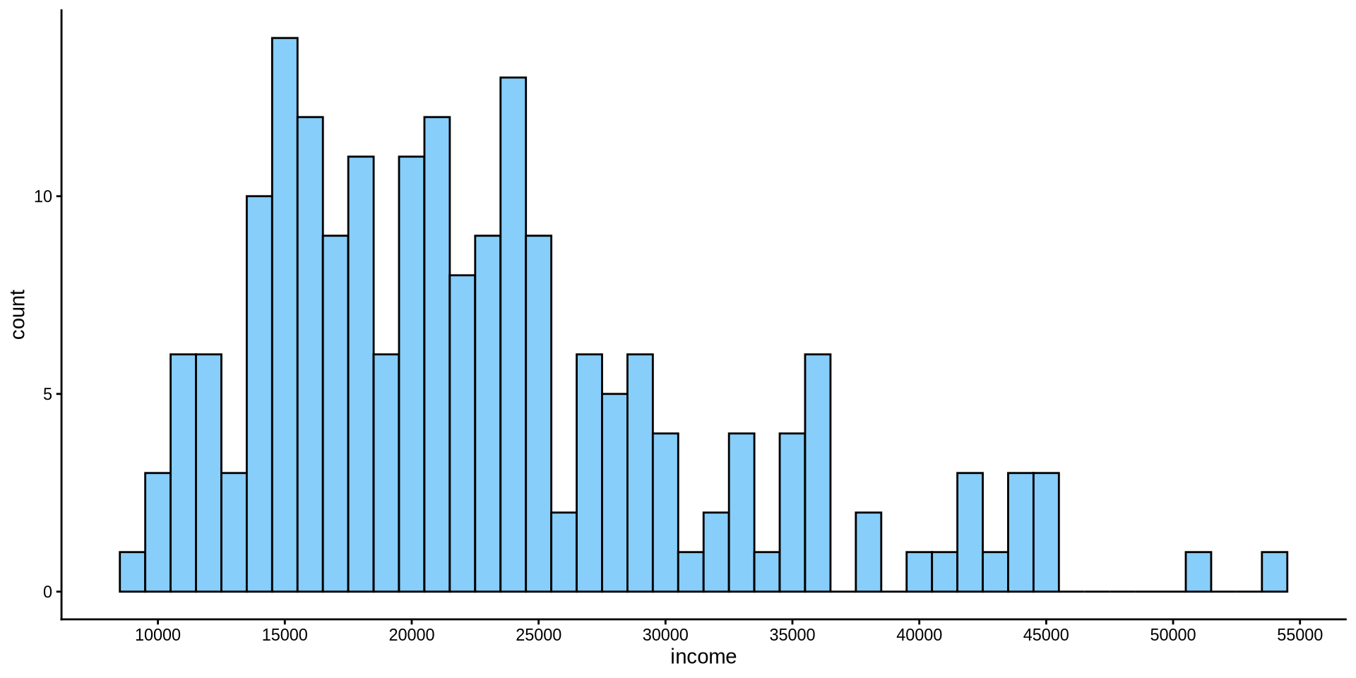geom_histogram(binwidth = 1000, fill = "lightskyblue", color = "black") +