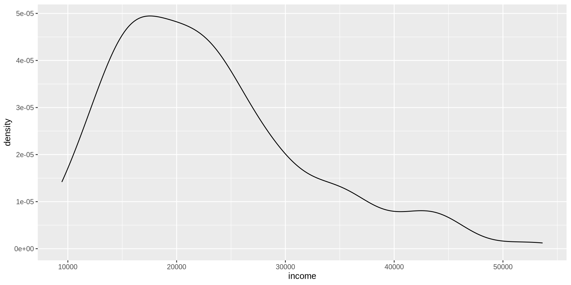 To make a density plot, we use geom_density().
