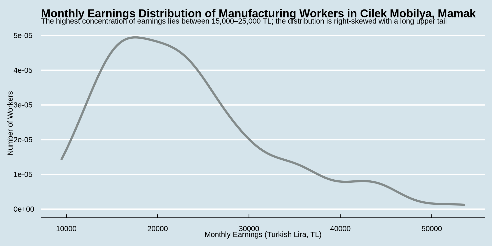 subtitle = "The highest concentration of earnings lies between 15,000–25,000 TL; the distribution is right-skewed",