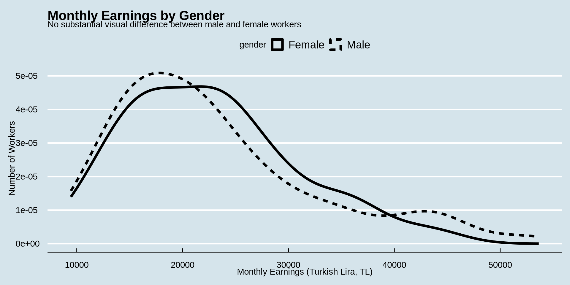 subtitle = "No substantial visual difference between male and female workers",